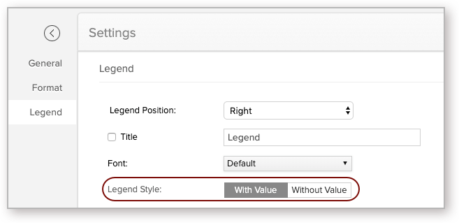 You can choose to display the legend items with or without the corresponding values. You can also customize the format to display data using the Format link.