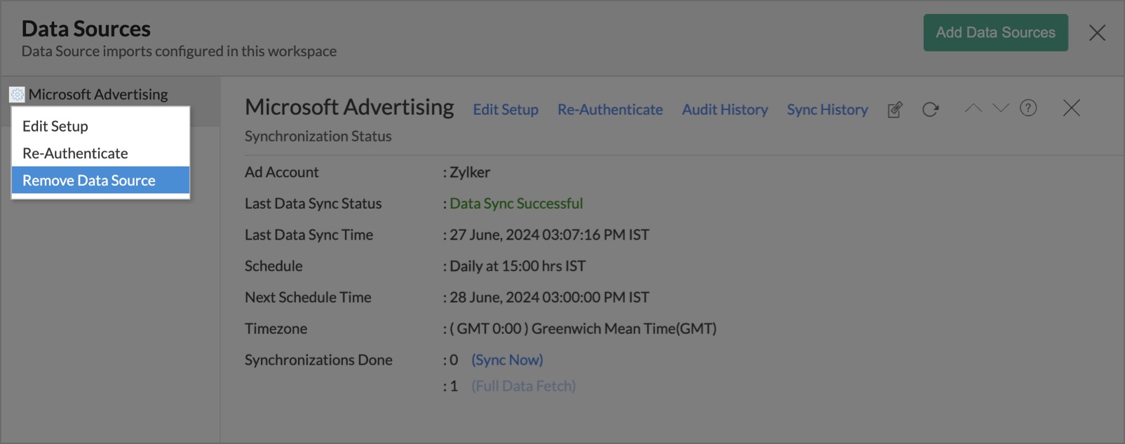 Zoho Analytics allows you to remove the integration if needed. Removing the integration will suspend further data synchronization. The data tables and the reports will be available.