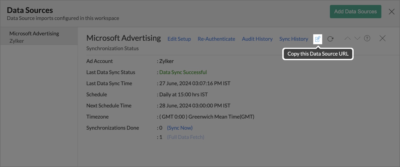 The Data Source Permalink helps you easily access the data source tab, and this link can be pasted in dashboards so that everyone accessing the dashboard can know about the sync status.