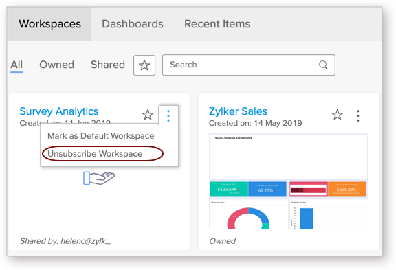 Follow the below steps to remove a shared workspace.