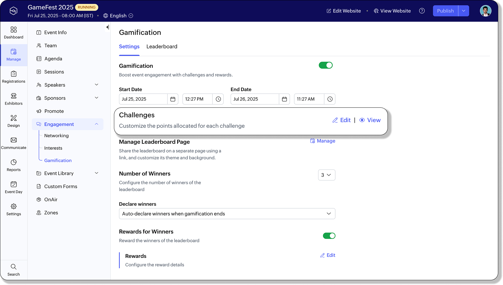 Offering rewards adds excitement and stakes to your gamification strategy. By assigning prizes to leaderboard ranks, you can inspire healthy competition and reinforce positive behavior throughout the event.