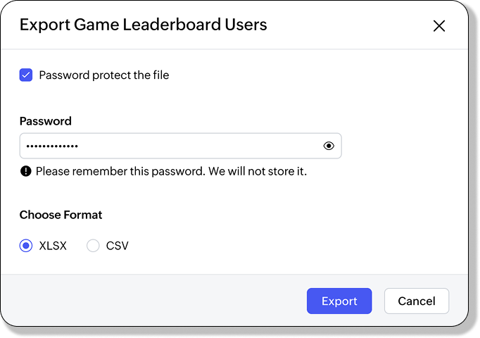 - Password protection is required for all leaderboard pages. Zoho Backstage does not store this password. Make sure to save and share it securely.