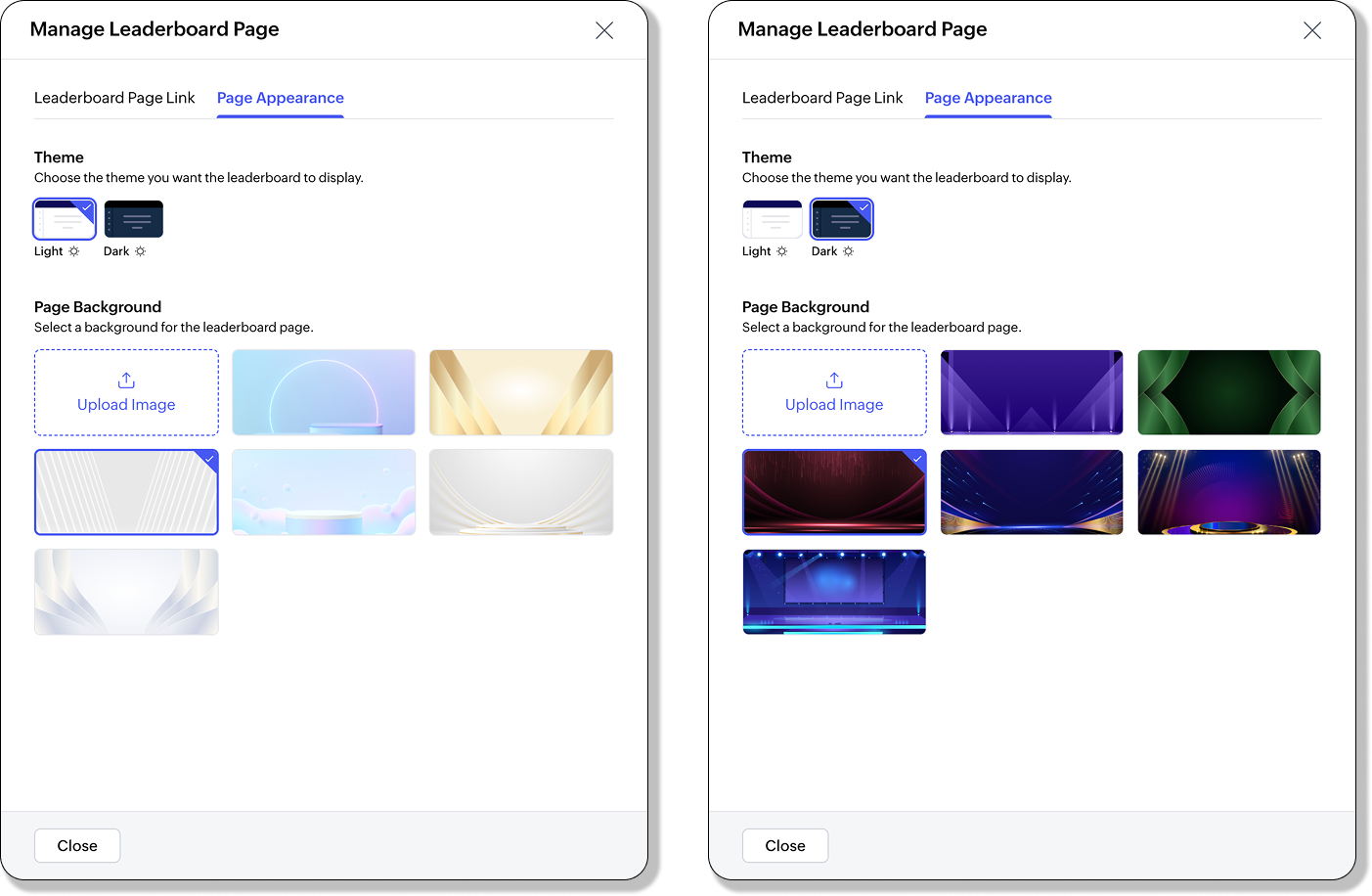 Customizing the leaderboard page ensures it blends seamlessly with your event branding. You can tailor the visual experience with theme options, background images, and color choices.