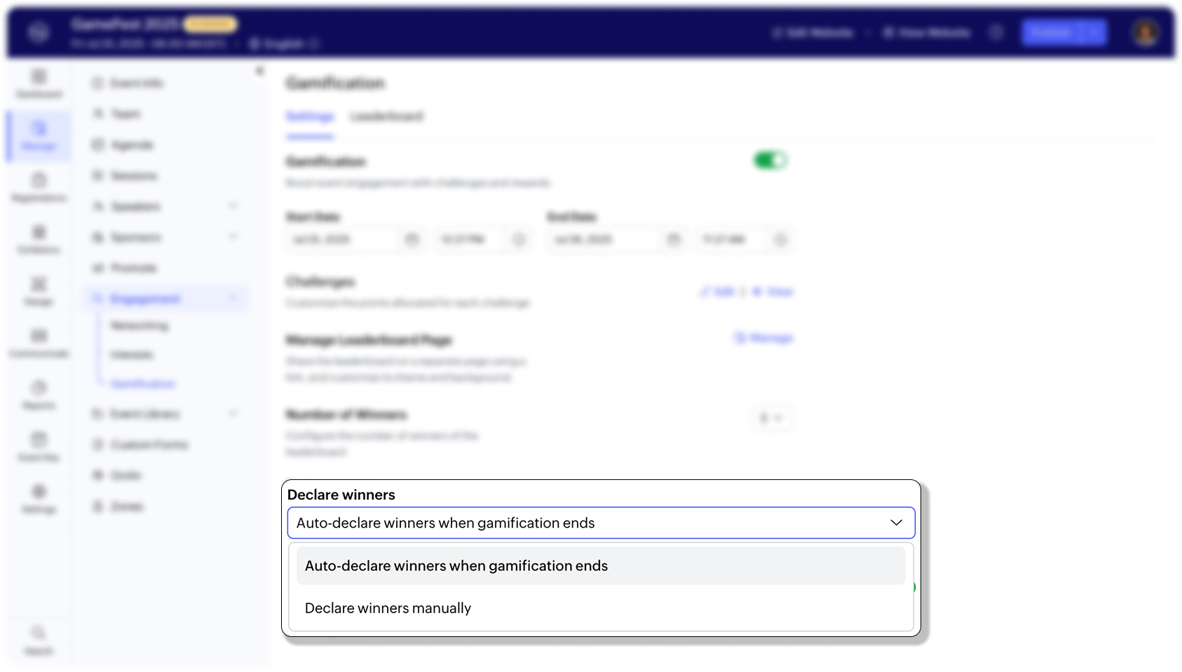 Winner declaration lets you choose when and how to finalize leaderboard results. Whether automatic or manual, this process ensures top scorers are highlighted clearly and transparently for everyone to see.