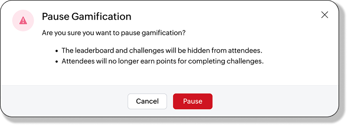 - Turn off the Gamification toggle. The Pause Gamification dialog box will appear.