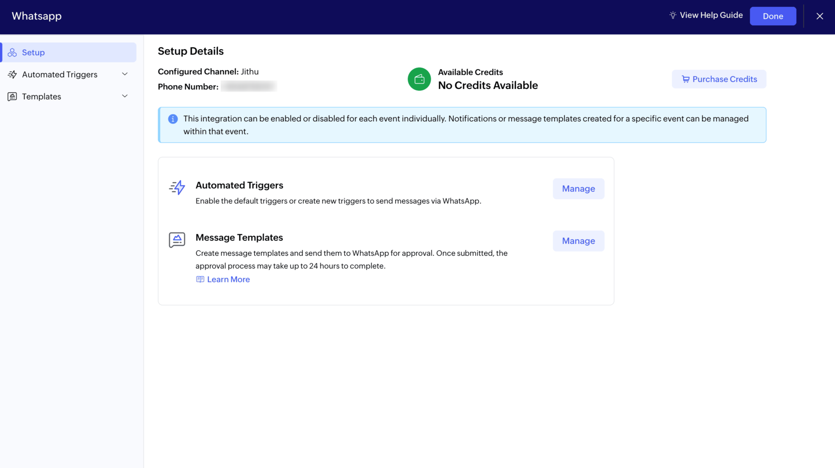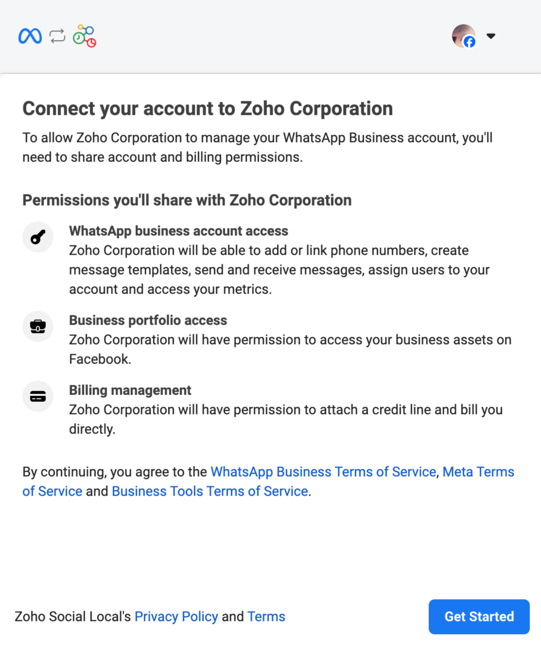 Zoho as BSP: By integrating, Zoho will become your Business Service Provider (BSP).