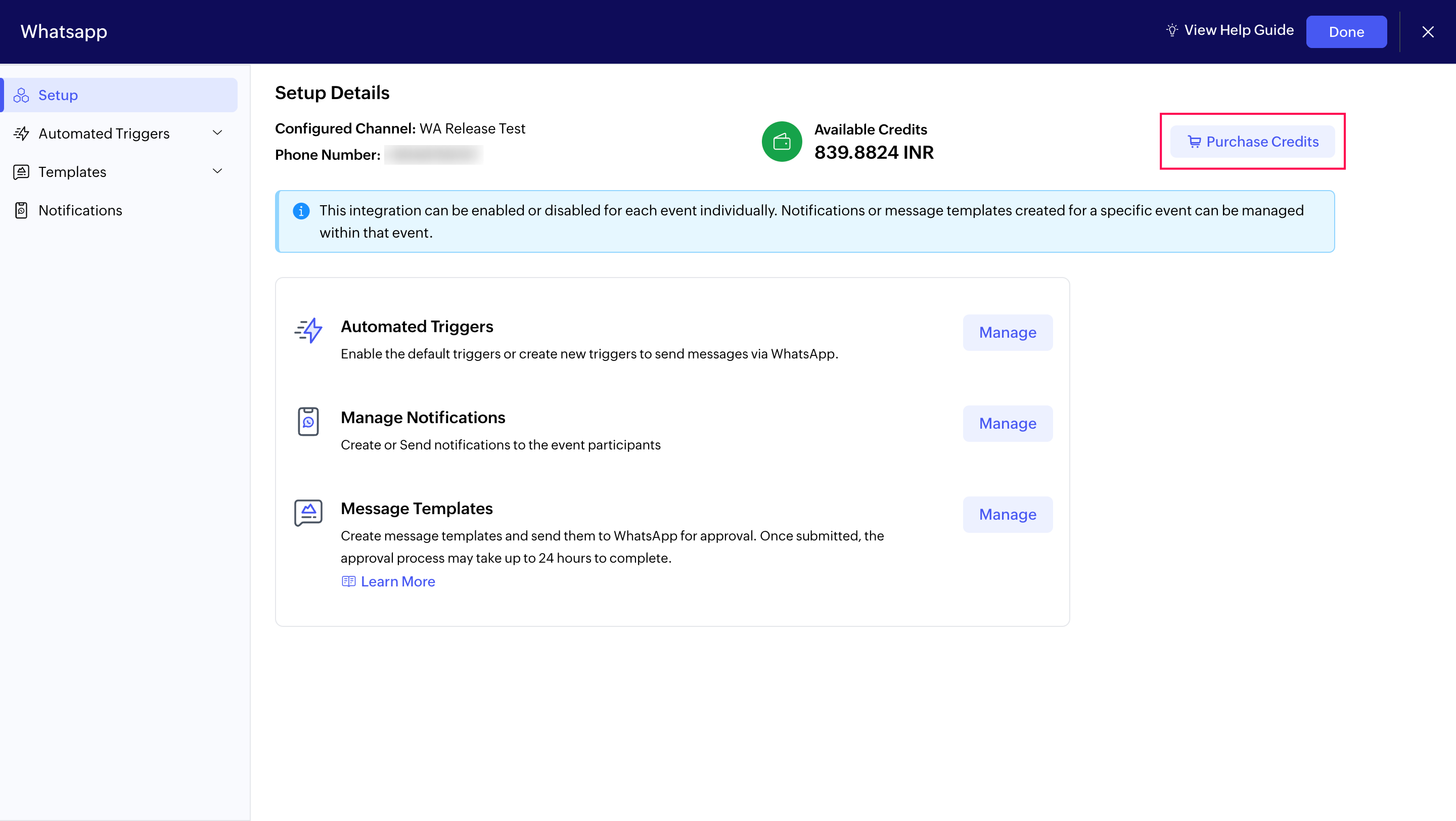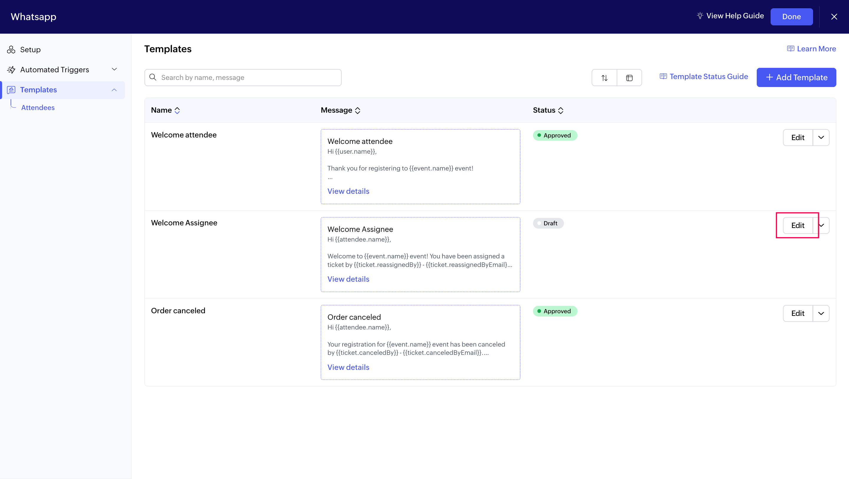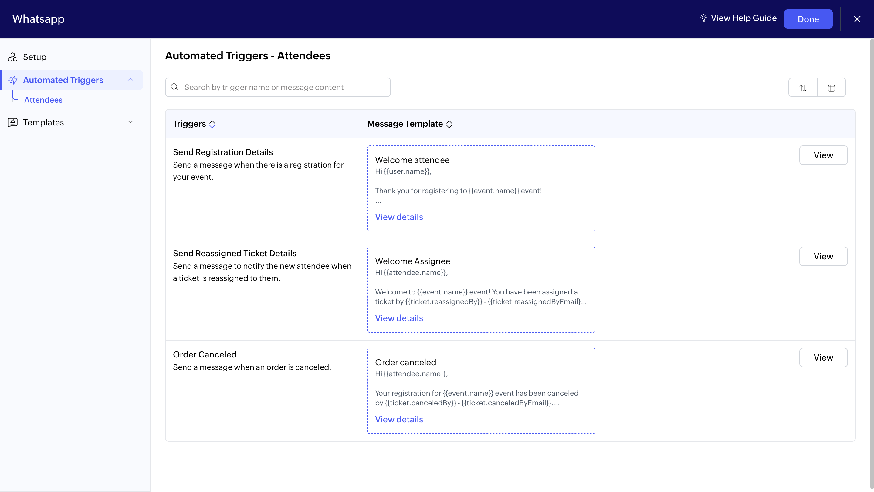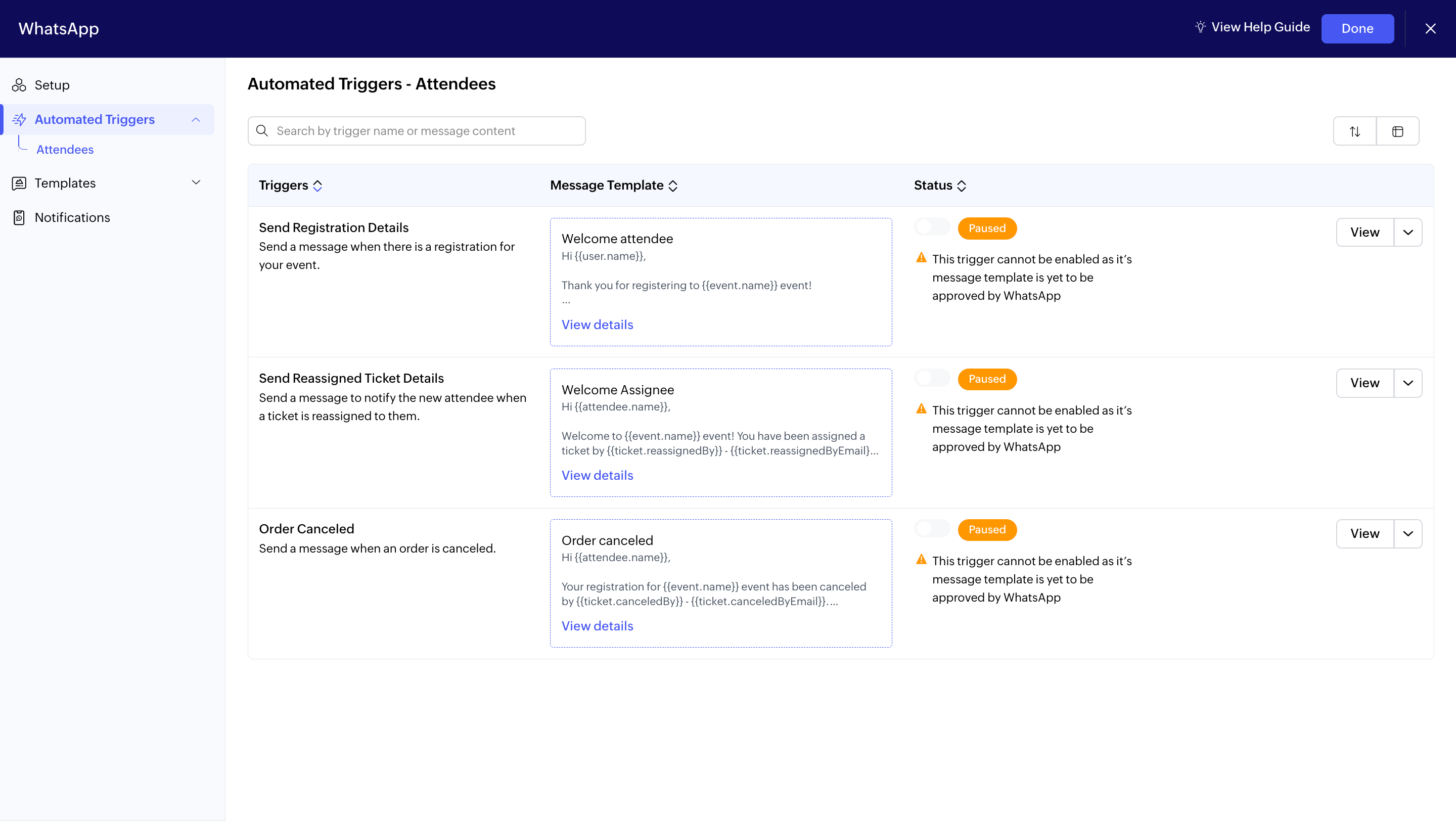 For event-specific communication, configure automated WhatsApp triggers within each event. Follow these steps to activate triggers for individual events.