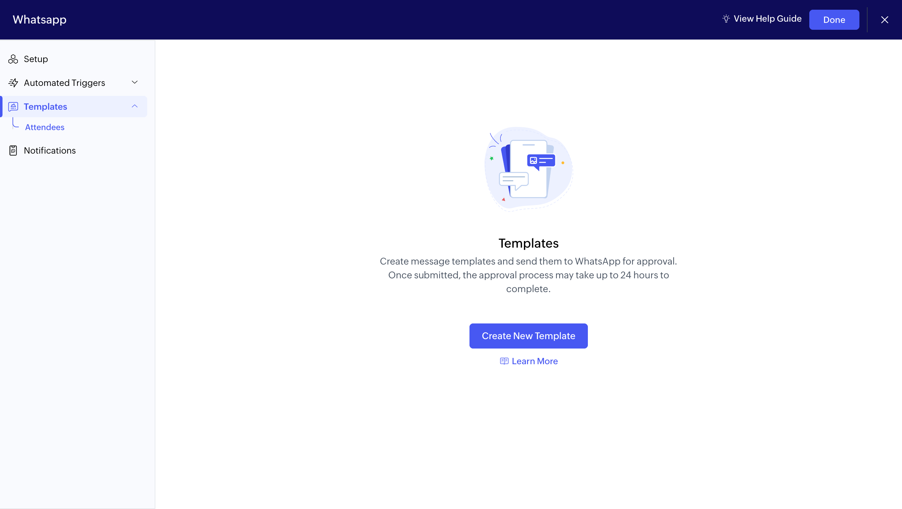 Only approved templates can be used for creating WhatsApp notifications in Zoho Backstage.