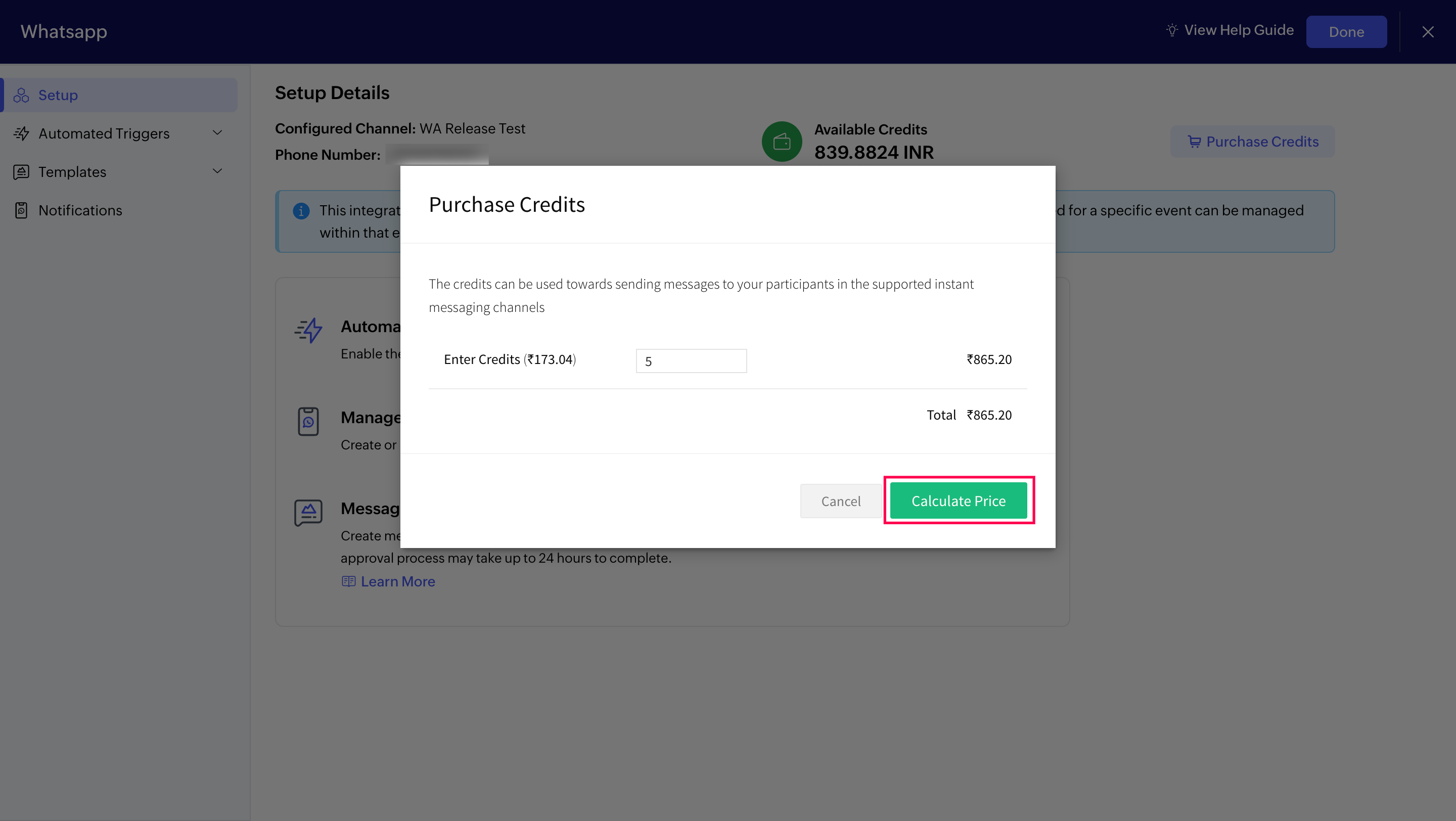 Enter the number of credits you would like to purchase and click Calculate Price.