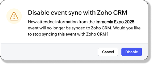 - A confirmation dialog will appear stating that new attendee information from this event will no longer be synced to Zoho CRM.