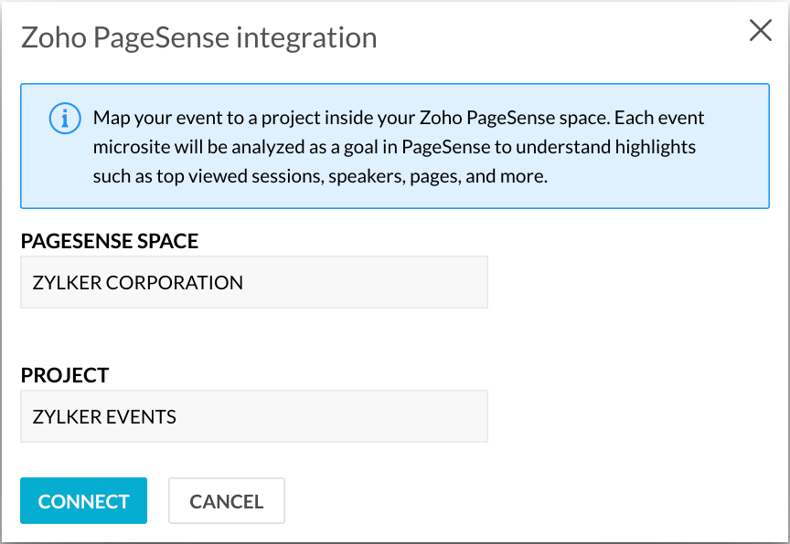 4. Click the Connect button in the Zoho PageSense integration dialog box.