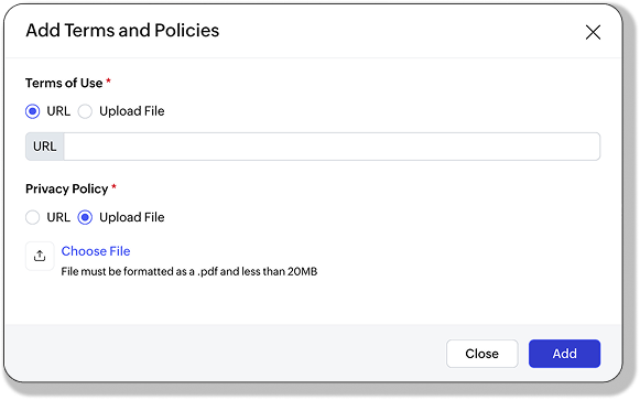 2. Click Add Terms and Policies. The Add Terms and Policies popup will appear.