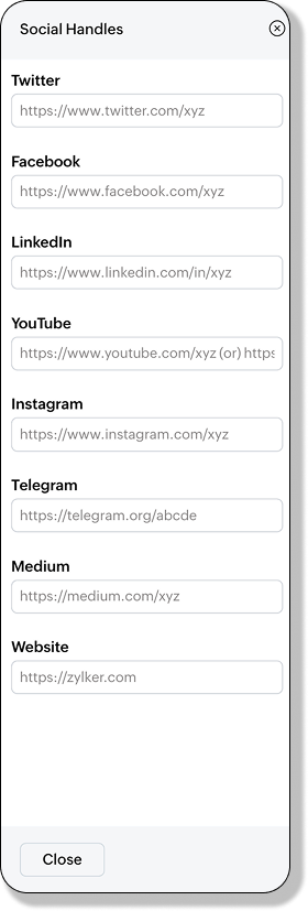 1. Hover over the Footer section and click the Settings icon associated with the Social Handle element.