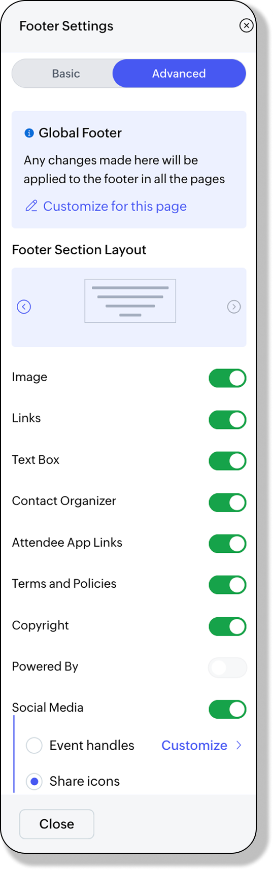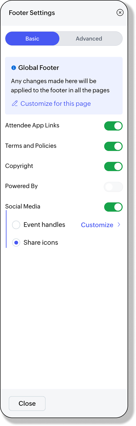 1. In the Basic tab, you can choose between using a Global Footer or creating a Custom Footer for the current page.