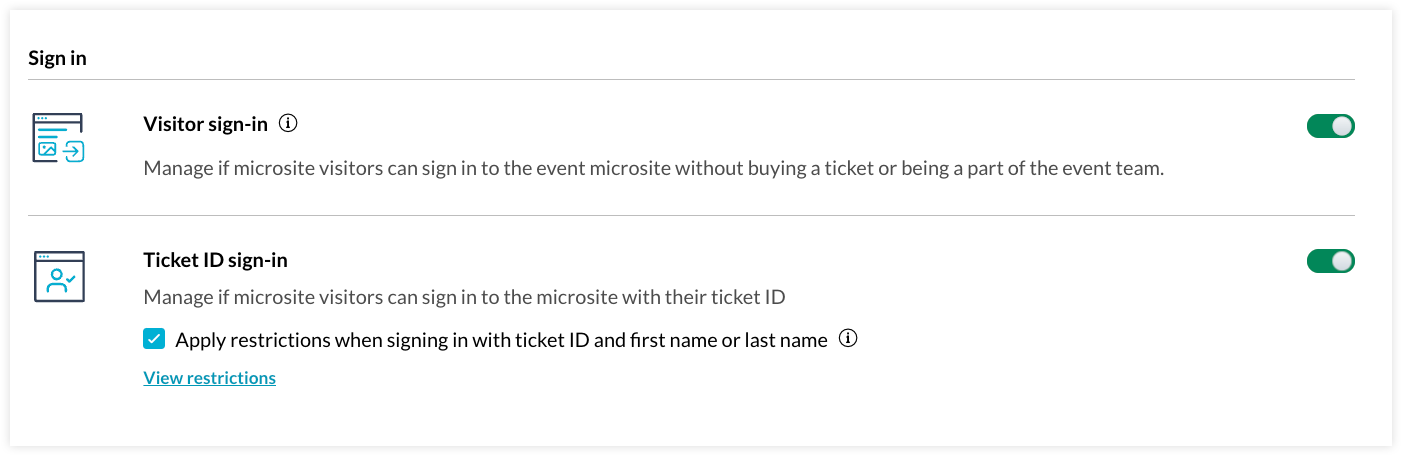 Sign in using | Ticket ID and name | Email address or ticket ID |
