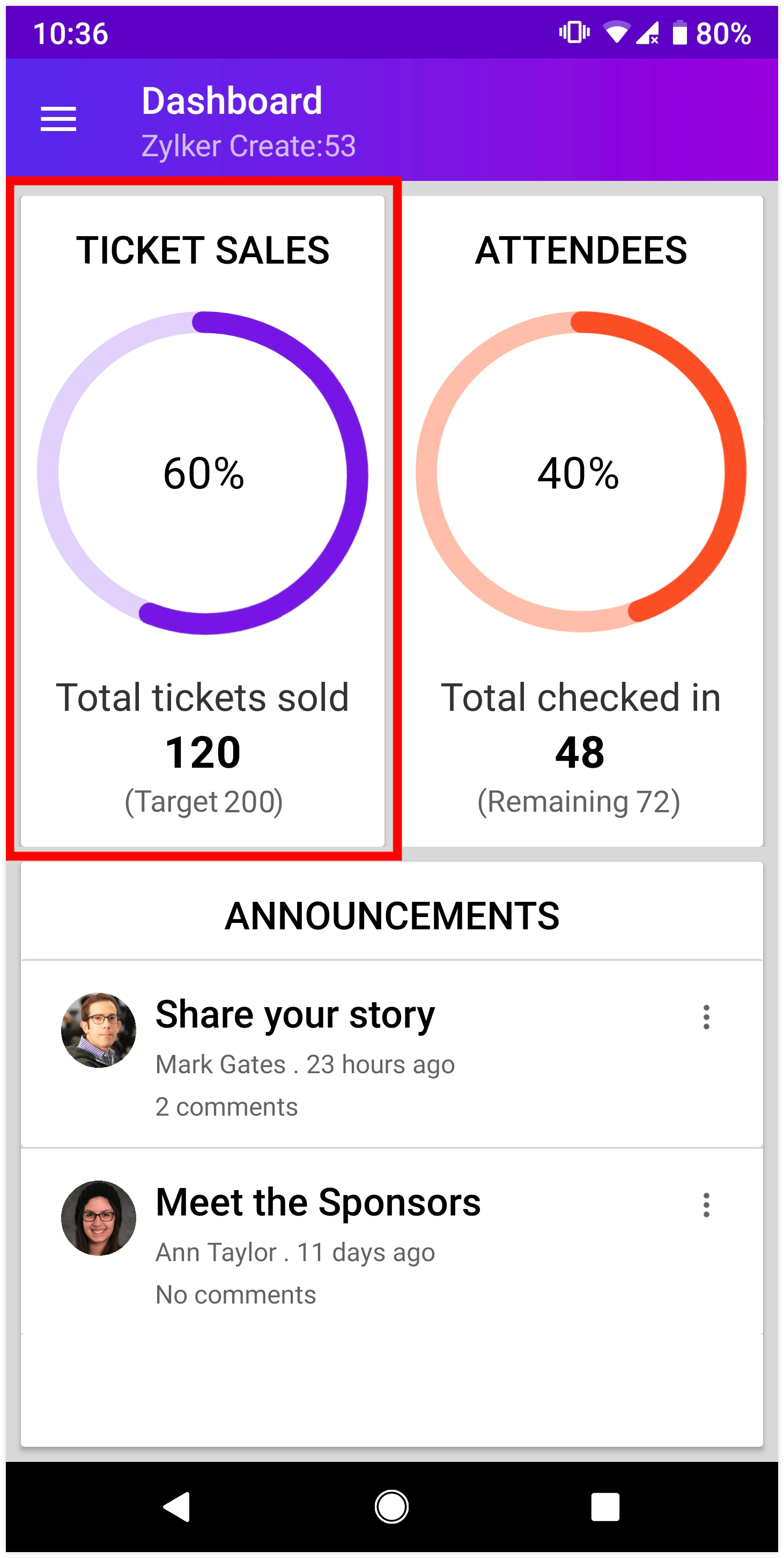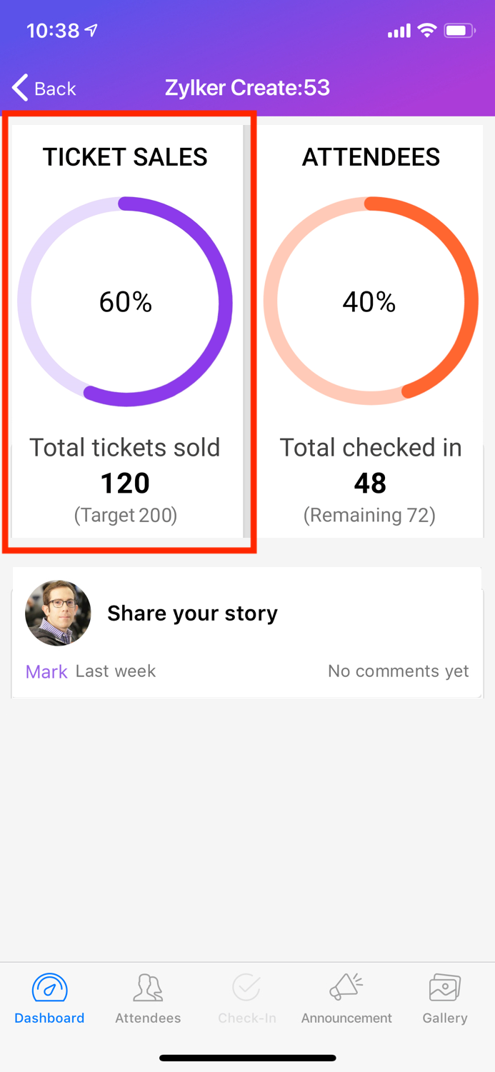 Track your ticket sales in real-time from the dashboard. With insightful data on ticket sales, you can track the progress of your goals and better your promotion strategies.