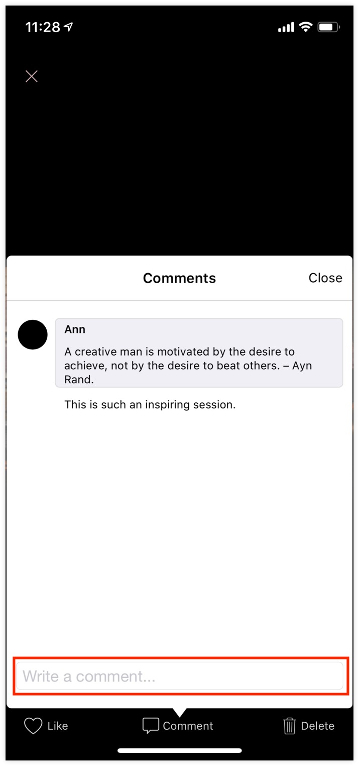 5. Enter your comment in the text box at the bottom.