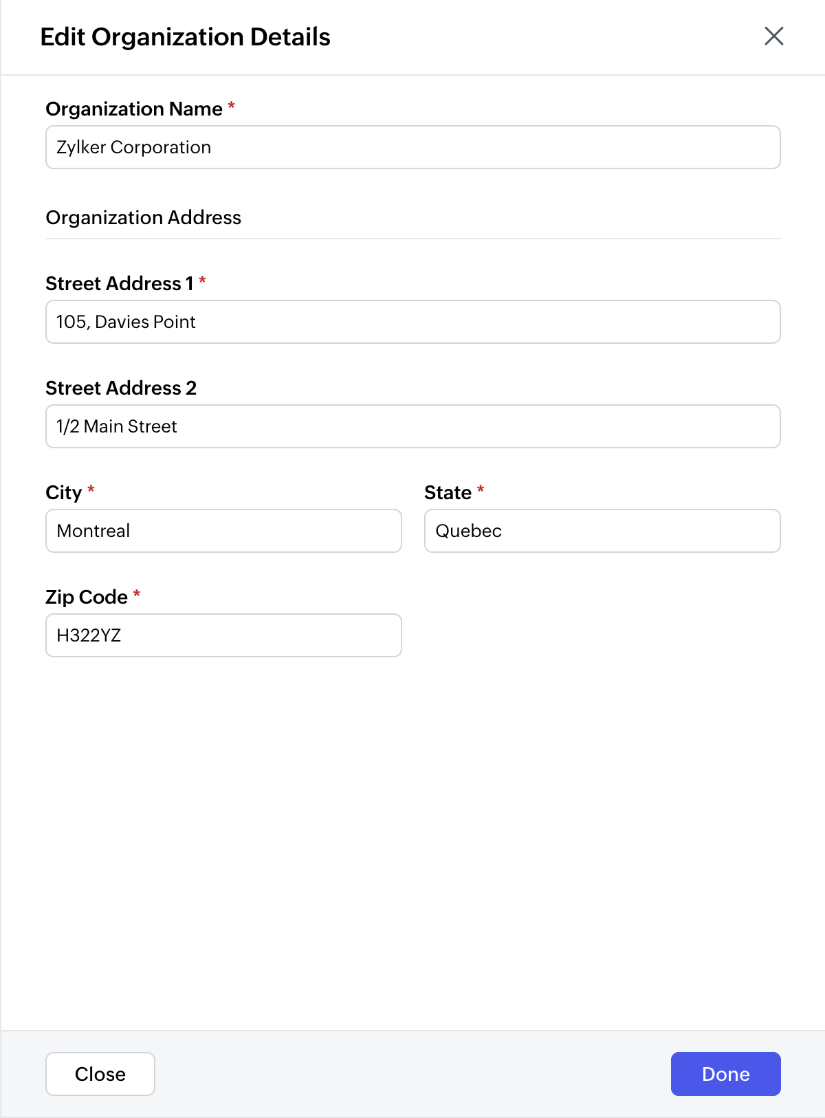 - Enter the address in the Organization Address area.