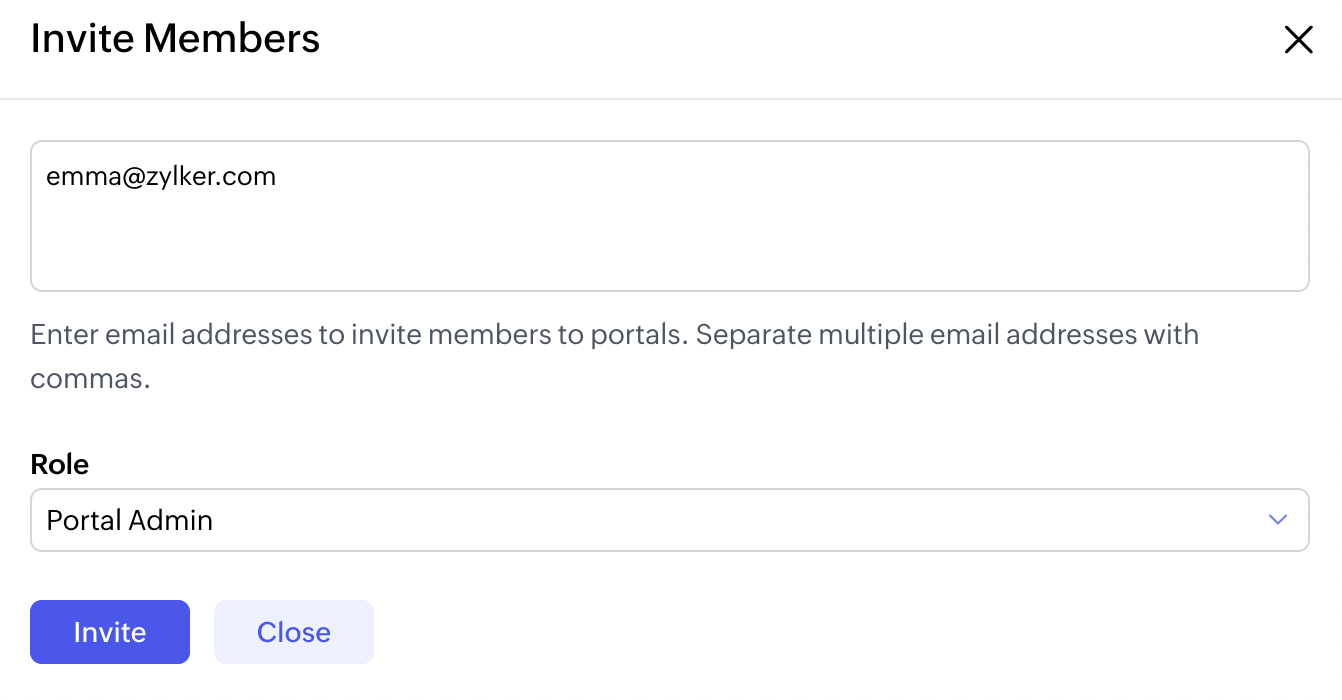 - Enter the email addresses of people you want to invite into the portal. Separate email addresses with commas.