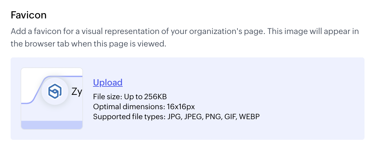 - Click Upload under Favicon in the Manage Portal Logo and Favicon section.
