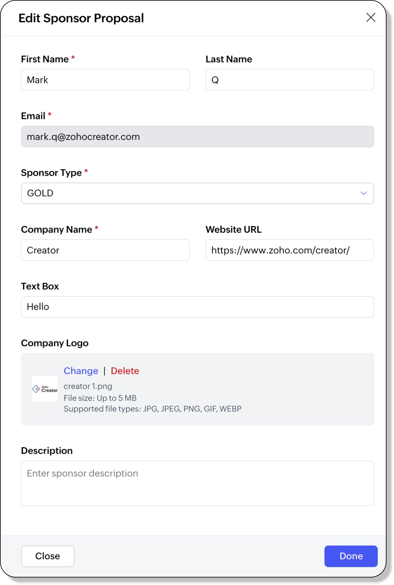 Modify sponsorship request details before approval, ensuring they align with your event’s needs.