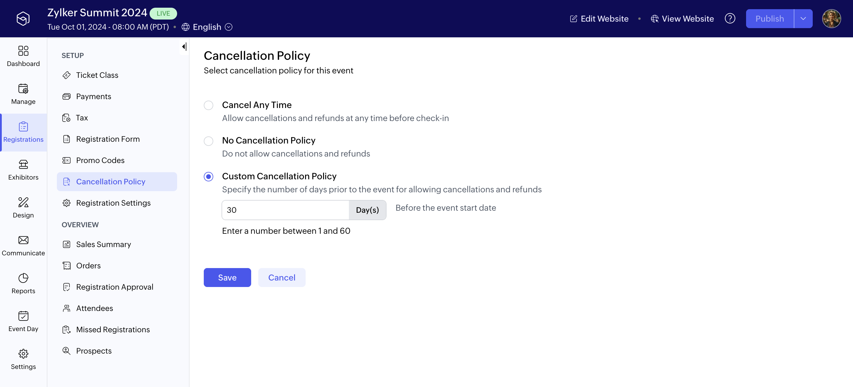Handle cancellations at your event with a refund or cancellation policy.