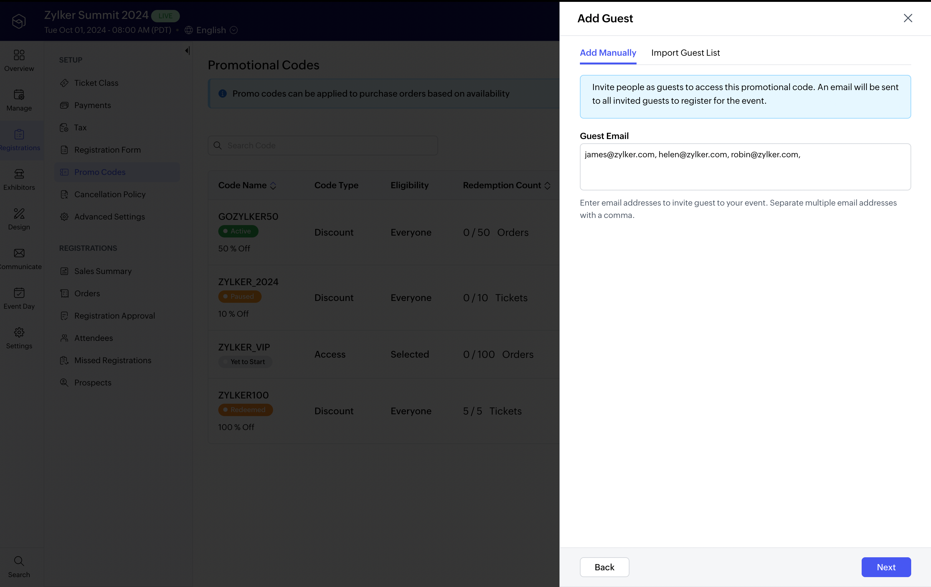 1. An email with the promo code details will be sent to all the email addresses mentioned in the guest list.