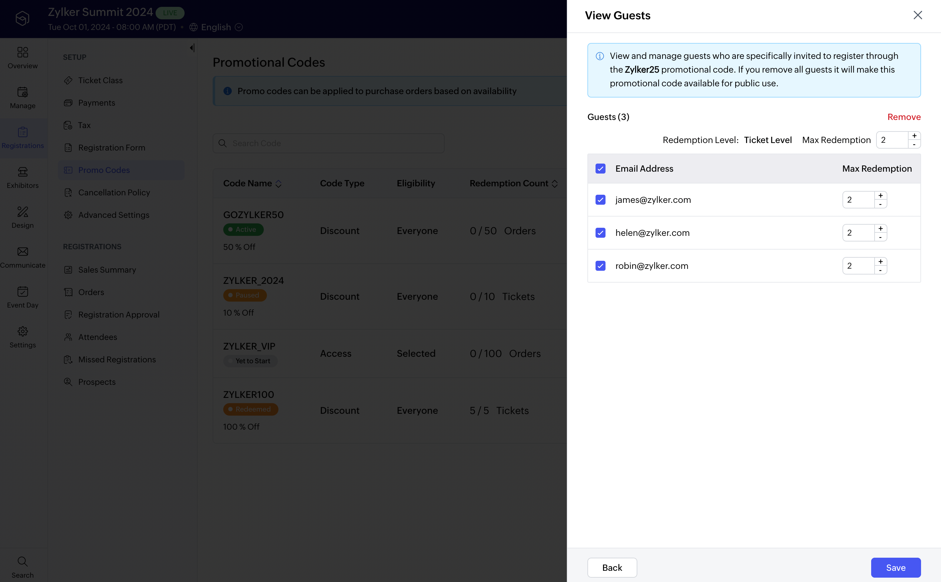 Note: Only guests who haven’t yet used the code can be removed from the guest list.