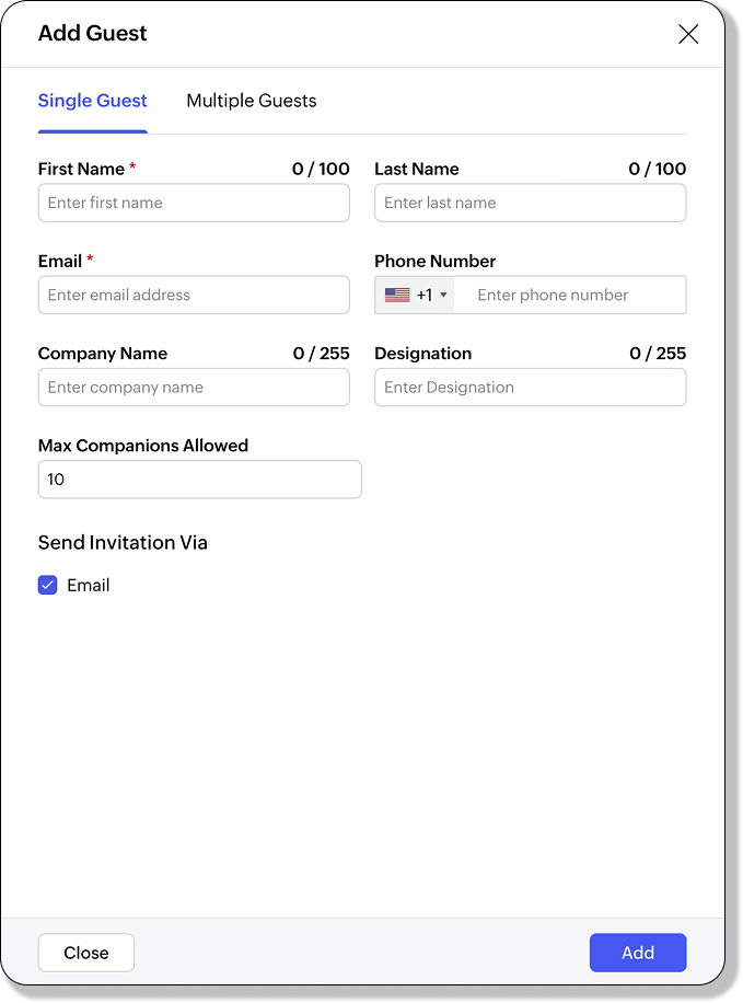 - Click Add Guest. The Add Guest side panel will appear.