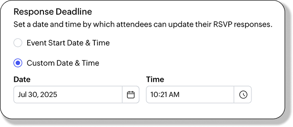 For example, if your event starts on July 22, 2025 at 11:29 AM, setting the deadline to the same or an earlier time ensures that all responses are collected in time for final logistics.