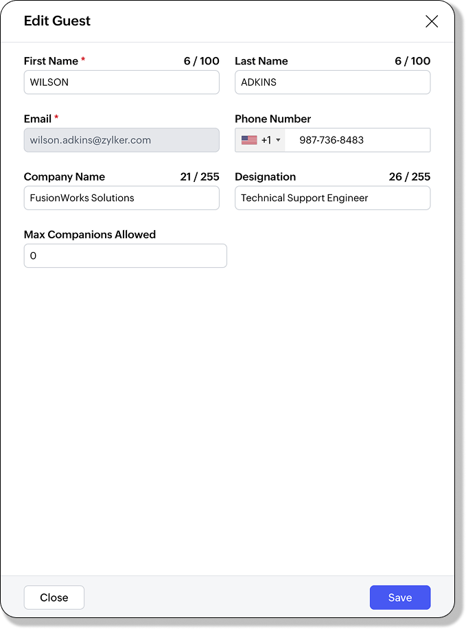 - Click Save to add the guest to your list.