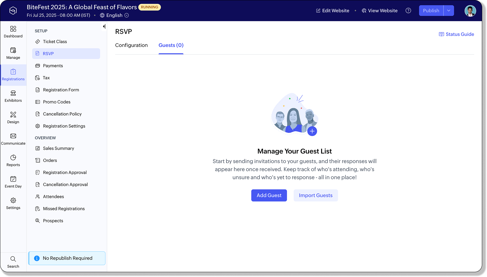 - Publish your event to start adding guests.