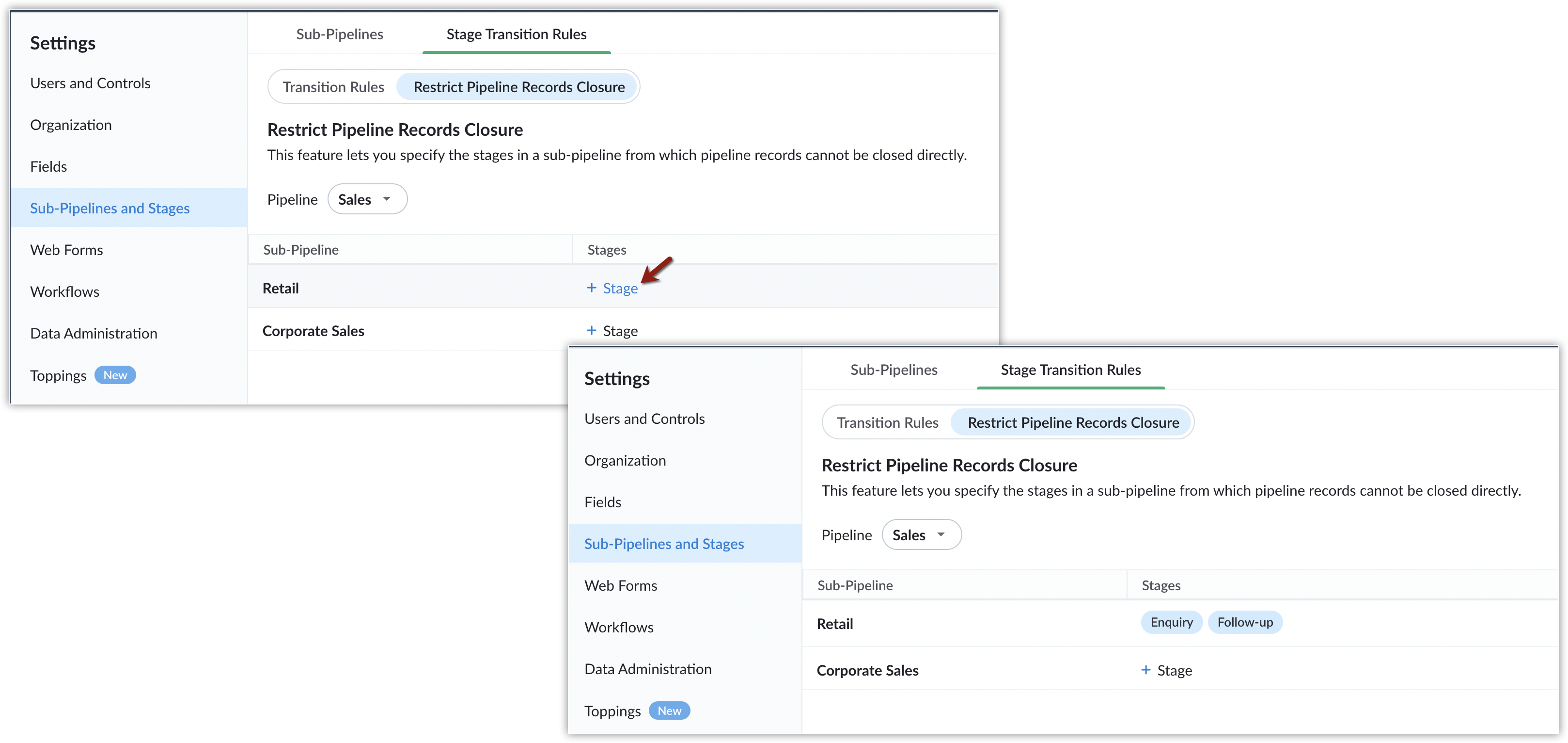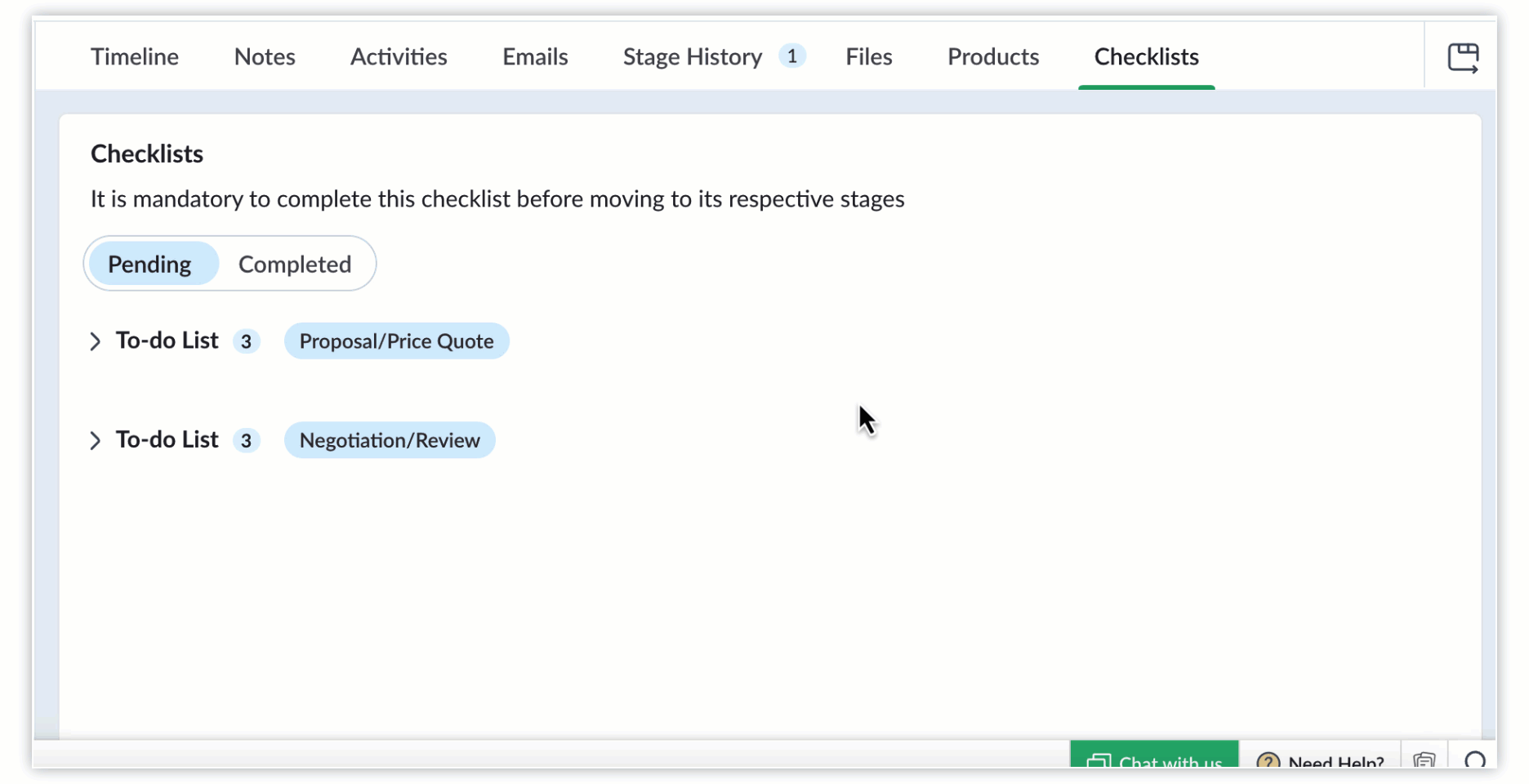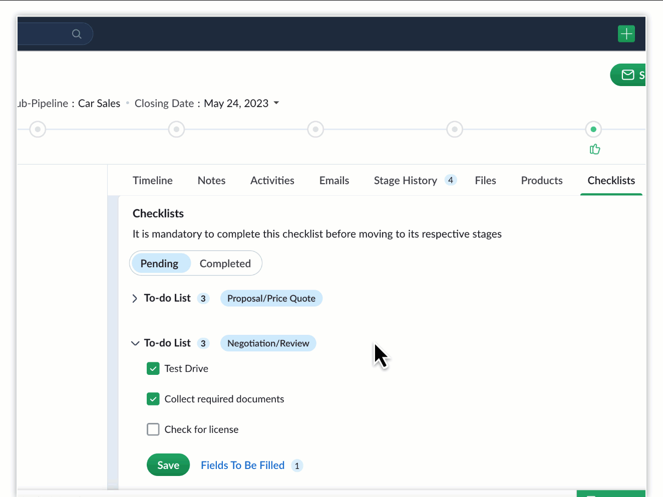 Checklist: You can create a checklist of all the to-do items that need to be completed in order to move a record from the From Stage to the To Stage.