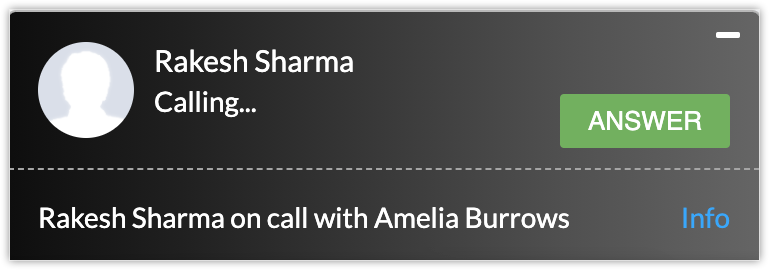 Your call pop-up automatically closes and the call ends. The customer will now be interacting with the second agent to whom the call is transferred to.