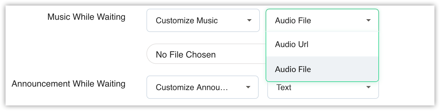 Music while Waiting: This music will be played to the caller while they are waiting in the caller queue. You can either add a custom music of your preference or choose the default music available here. Custom music can be uploaded in either of the following formats: