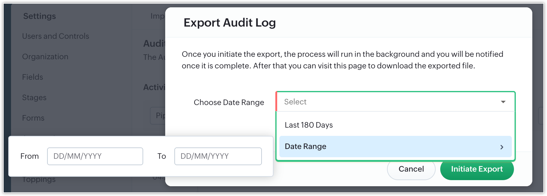 Filtered Export: After applying filters (based on entity, user actions, or date range), you can export up to 180 days of data from within the selected range.