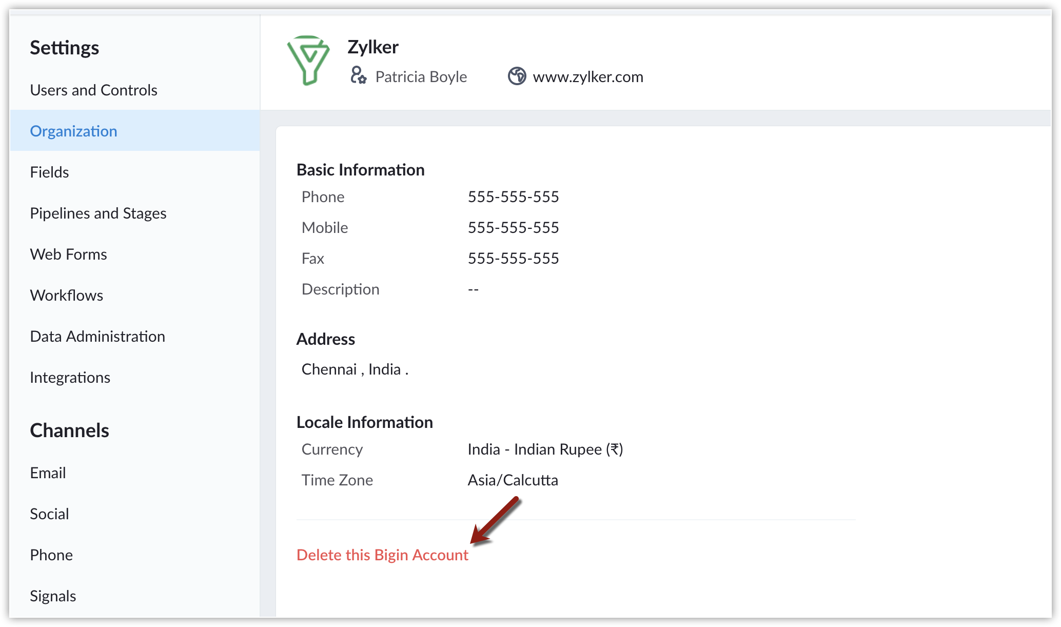 Delete Bigin Account | Online Help - Bigin by Zoho CRM