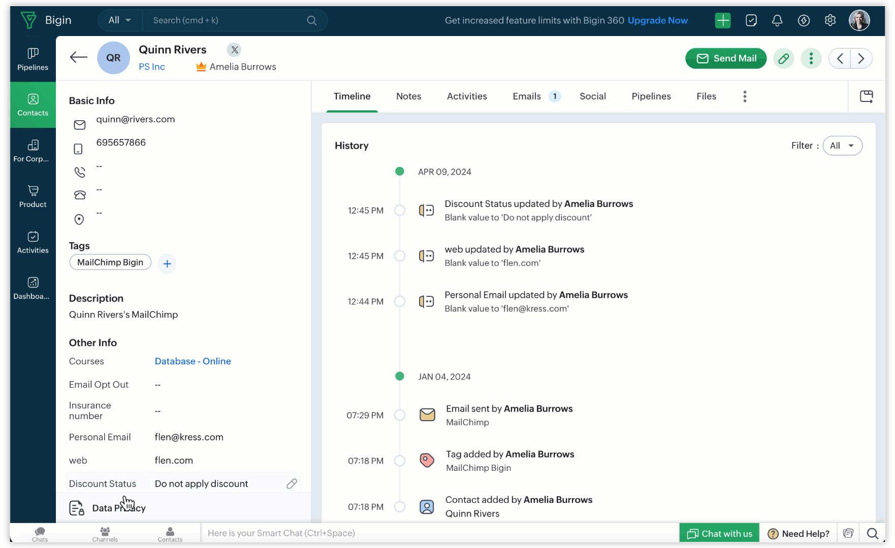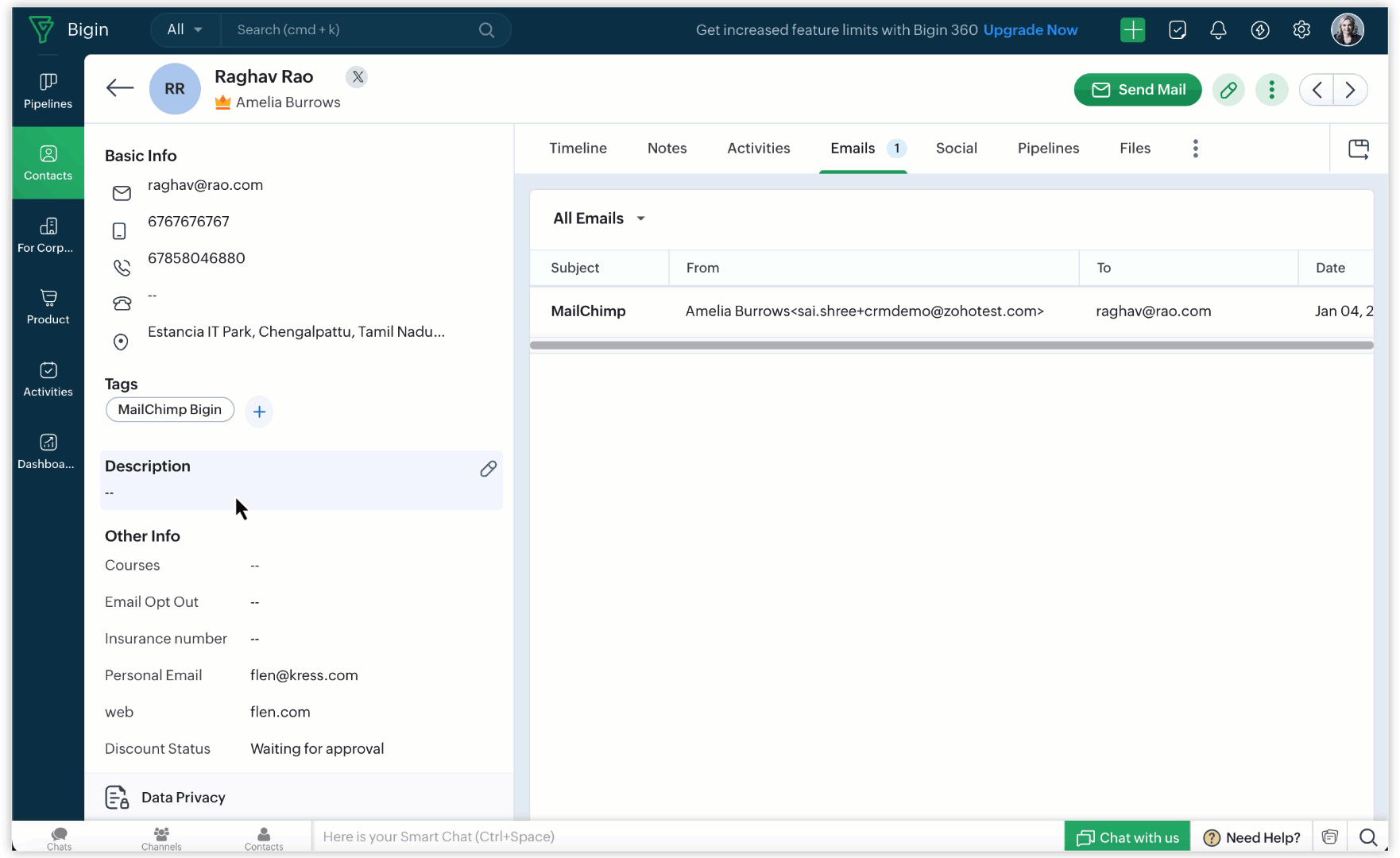 Data subject's information can be pushed into Bigin in many ways. You can also enter the information manually. Data source keeps a record of how the information landed in Bigin.