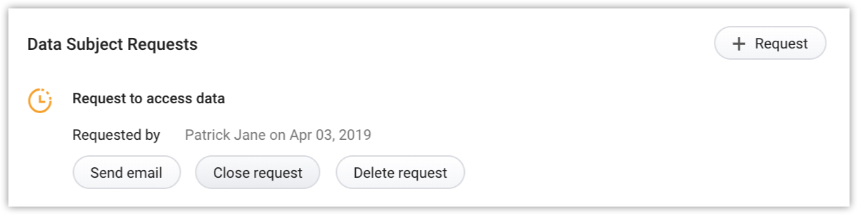 Under the Data Subject Requests section, click the + Request button.