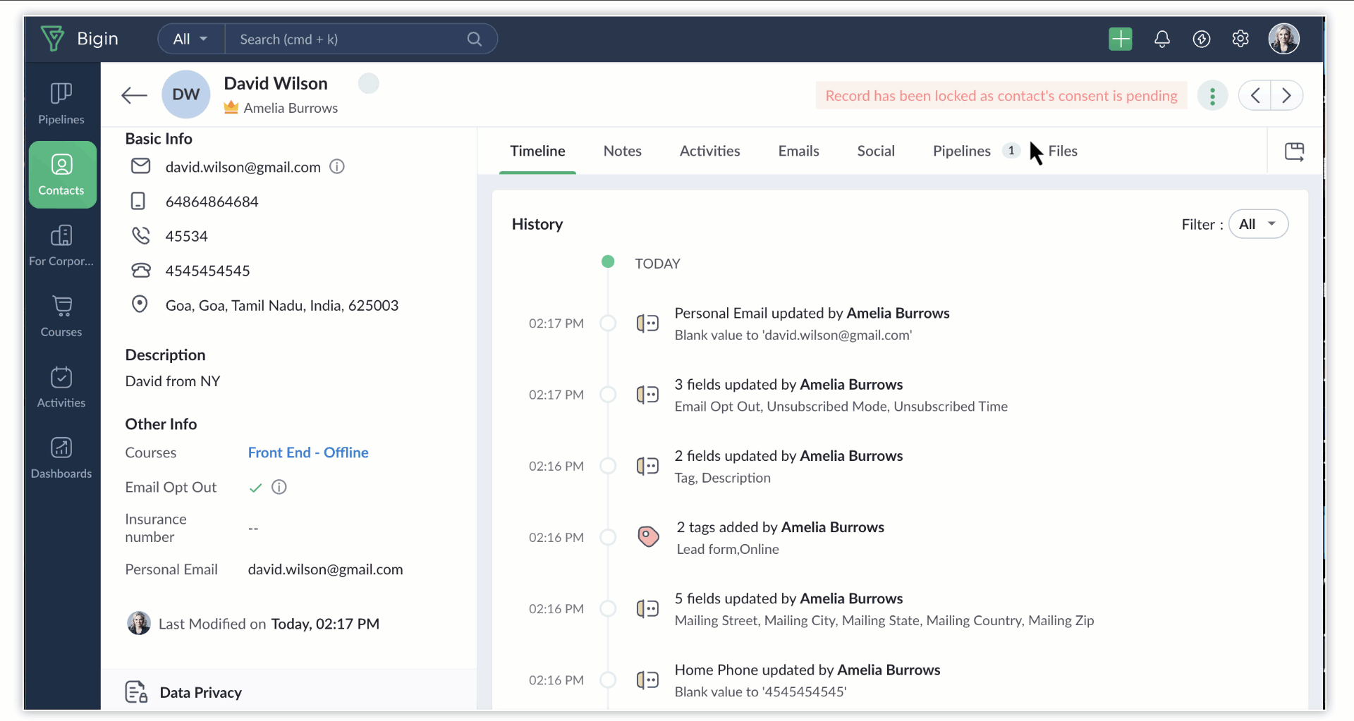 1. Click open the data subjects record in your Bigin account.