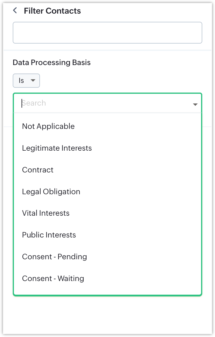 Filtering Contact Records by Data Processing Basis