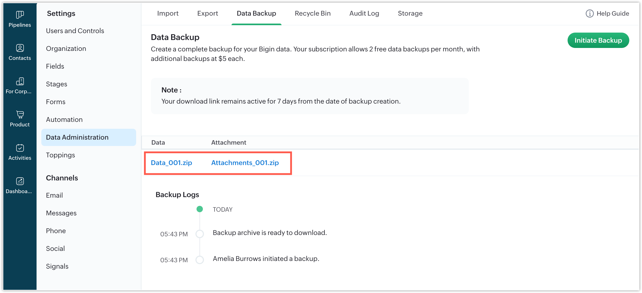 FAQs on Data Backup | Online Help - Bigin by Zoho CRM