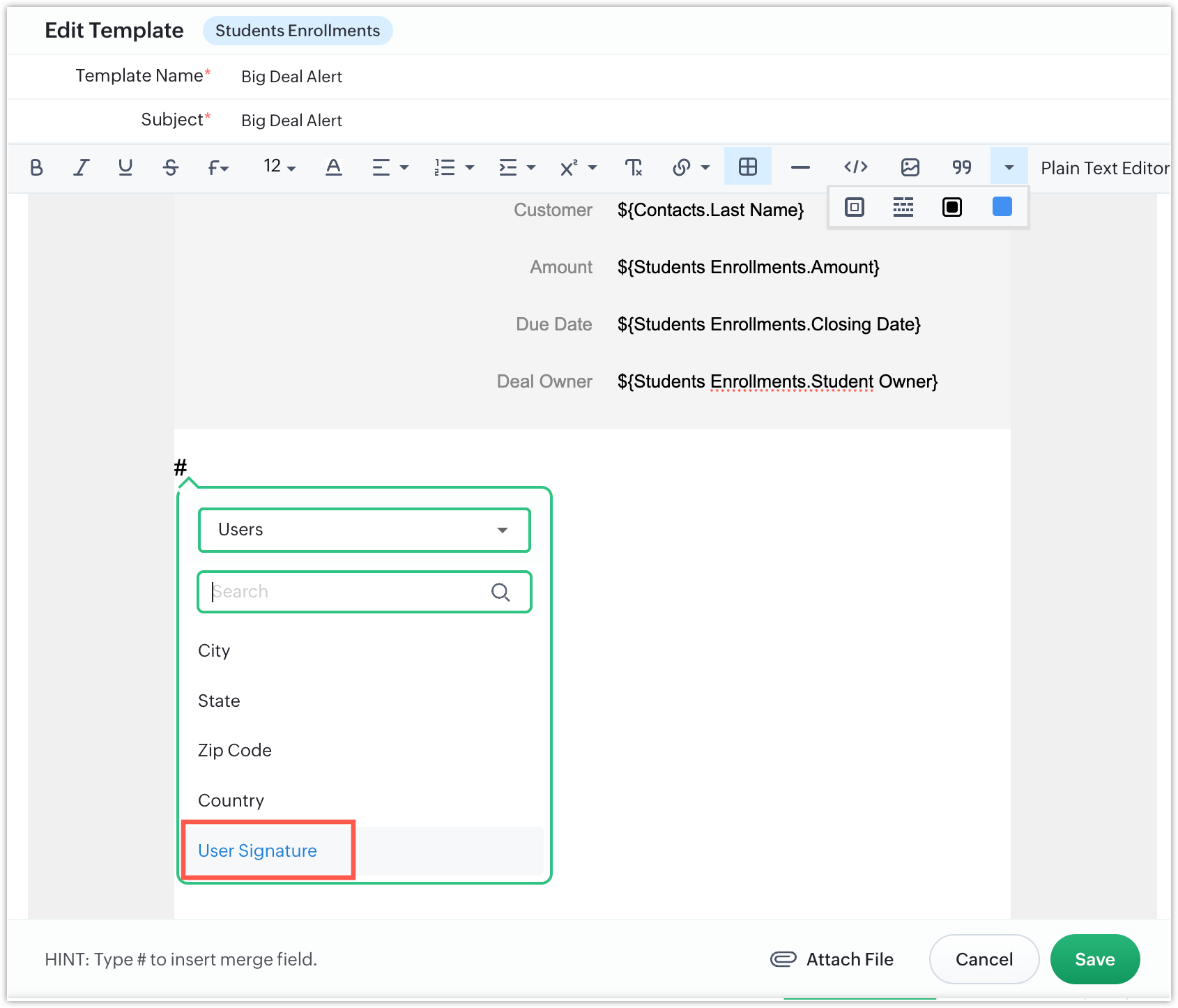 Email templates in Bigin can help you save time and maintain consistency in communication. With a standard format in place, you can use the email templates repeatedly for various situations or campaigns. This can be helpful for a real estate agency ...