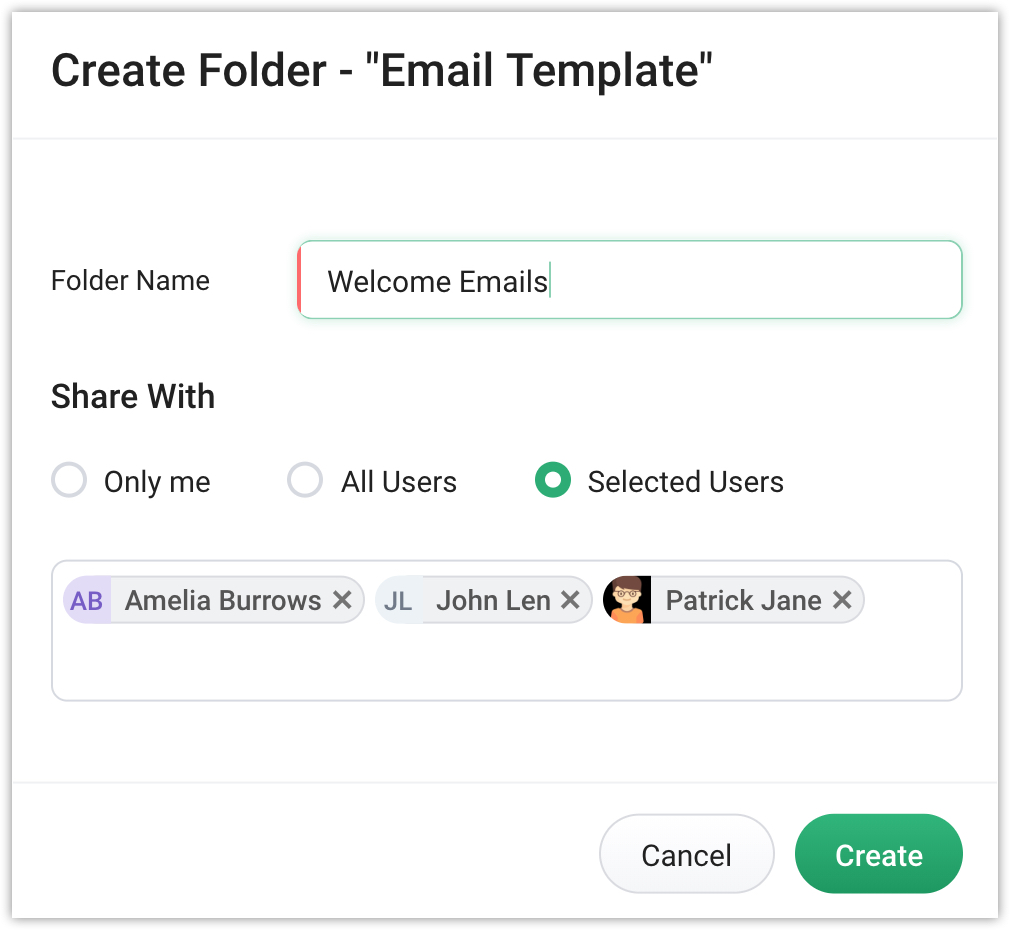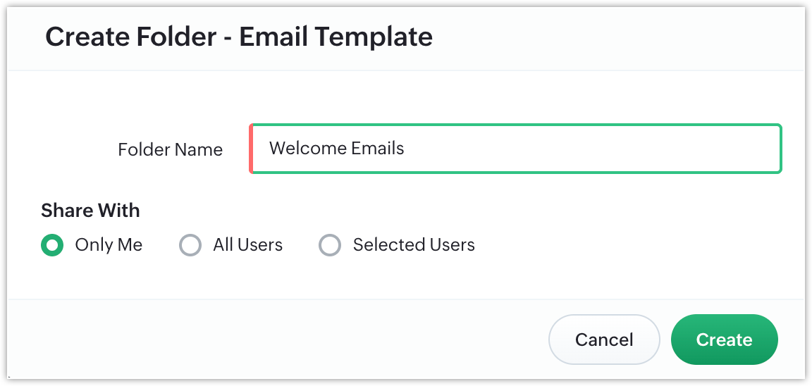 You can group email templates in a common folder for easy access. For example, you could have separate folders for welcome email templates, follow-up templates, and organization templates. These folders can be shared with other users in your organization.