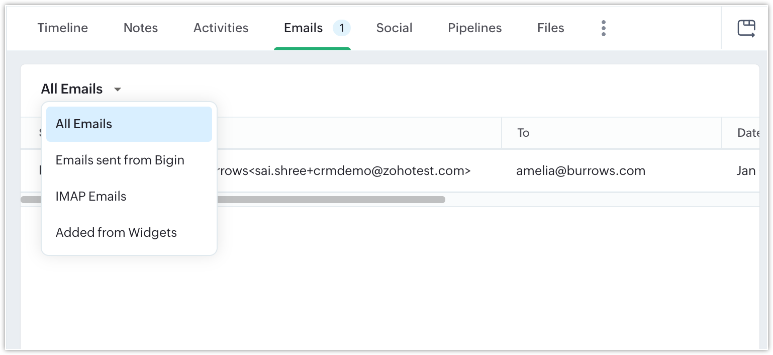 Email is a popular mode of communication preferred by most businesses. With the help of the 'Emails' tab in the record details page, sales reps no longer have to switch between their Bigin app and email app to check emails from their customers. They ...