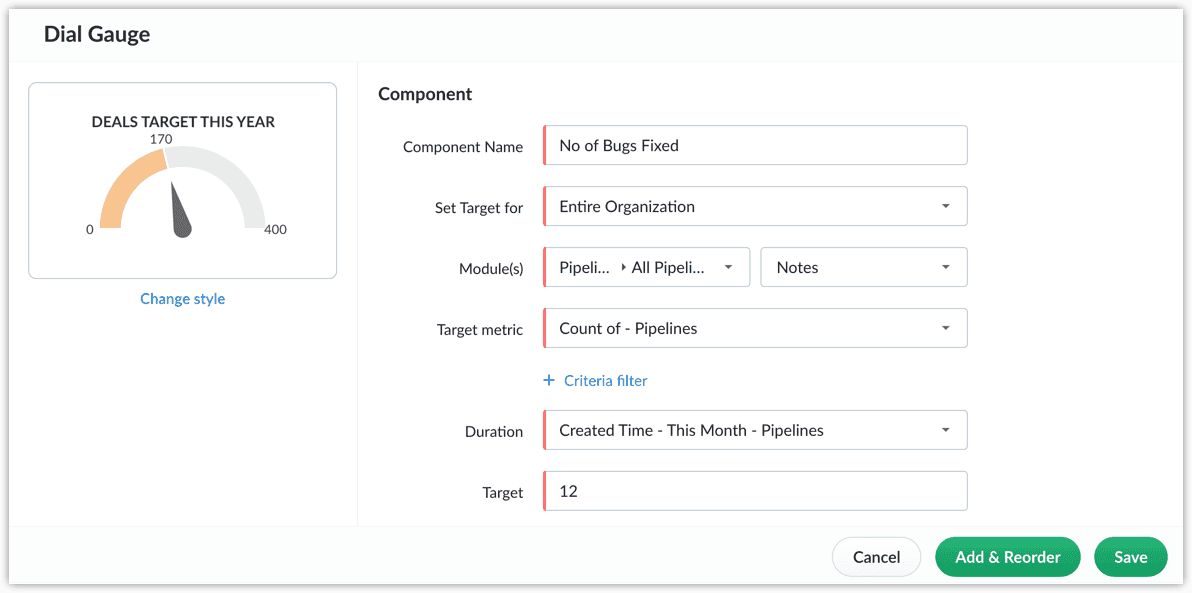 Choose the type (Dial, Traffic Light, Single or Multiple Bar)