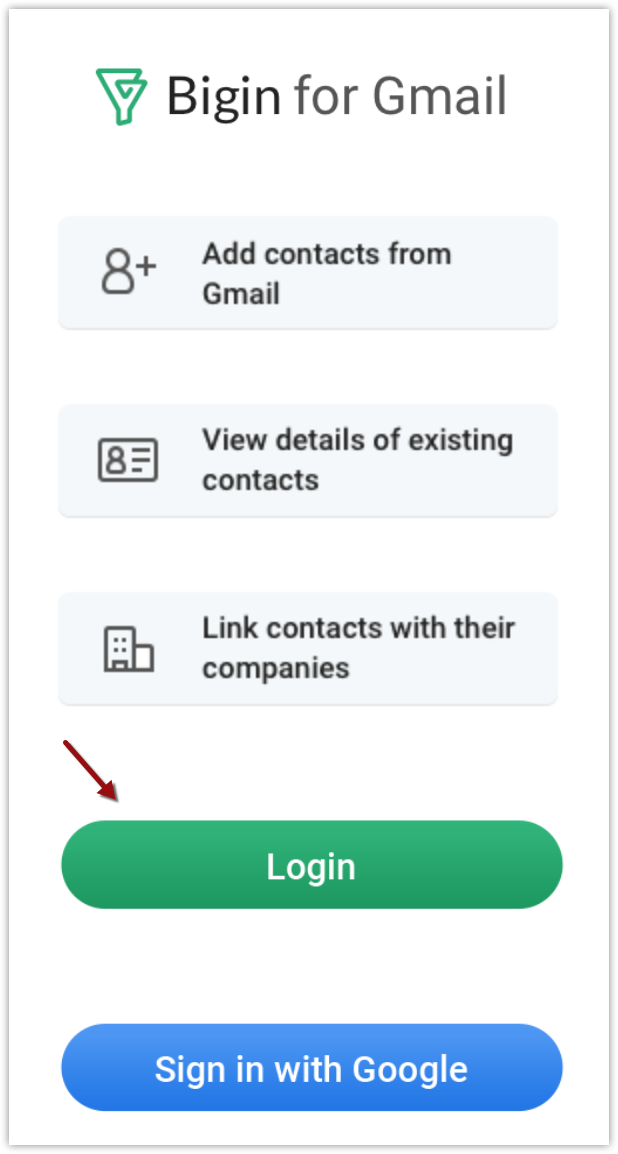 Once the add-on is installed, you need to login to your Bigin account to view and add contacts from your Gmail account.