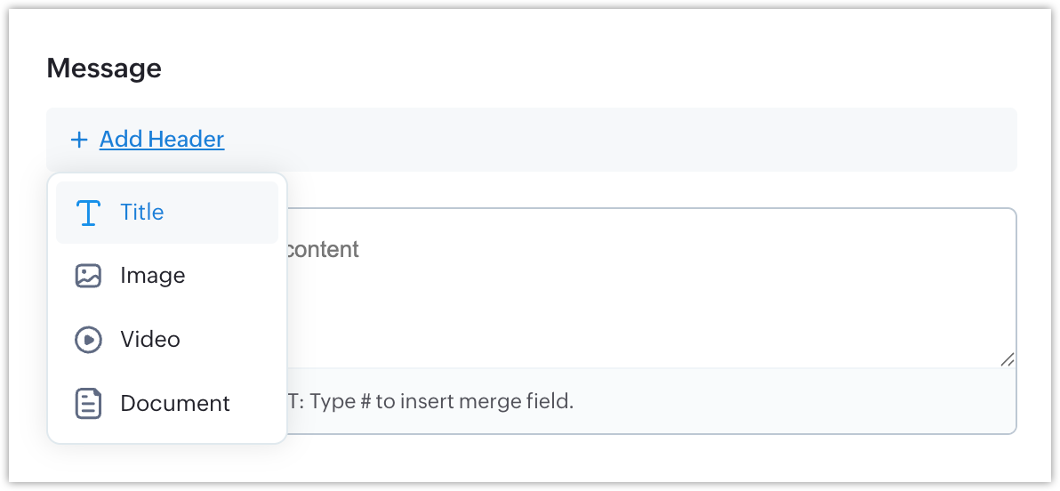 5. Add a header. This is a short title to give context to your message. Instead of text, you can also use an image, video, or document as the header.