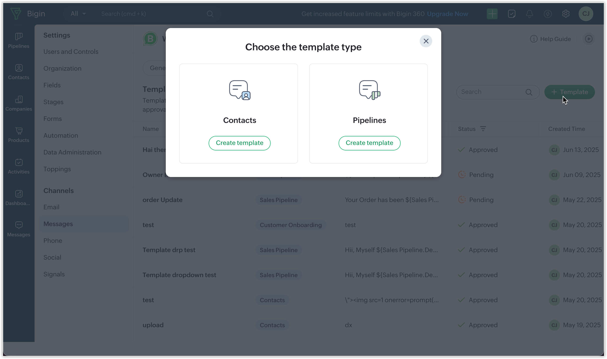 Create records: Bigin will create a new record or map existing contacts accordingly based on the mobile number associated with the chat.