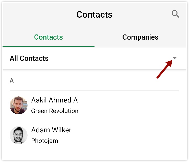 Views are groups of records of the same type. For example, the USA Customers view is a list of customers in the USA, and their records are grouped under a single list. You can switch between various standard and custom views that are available for the modules.